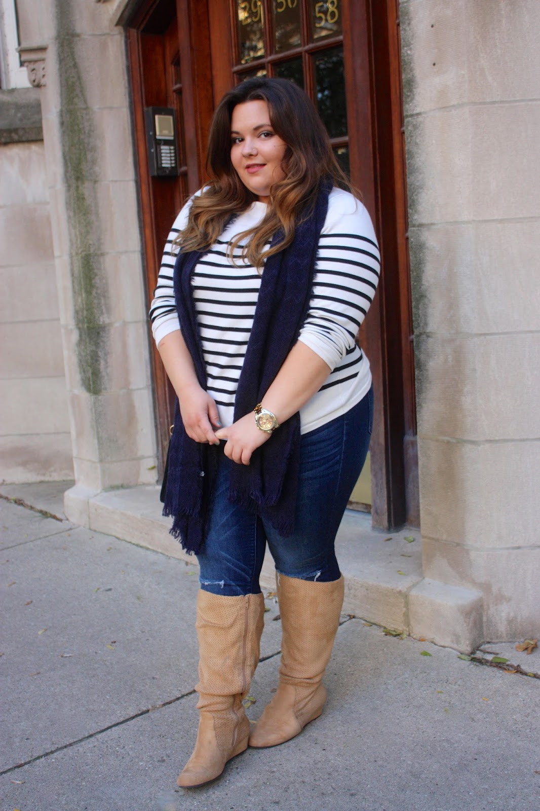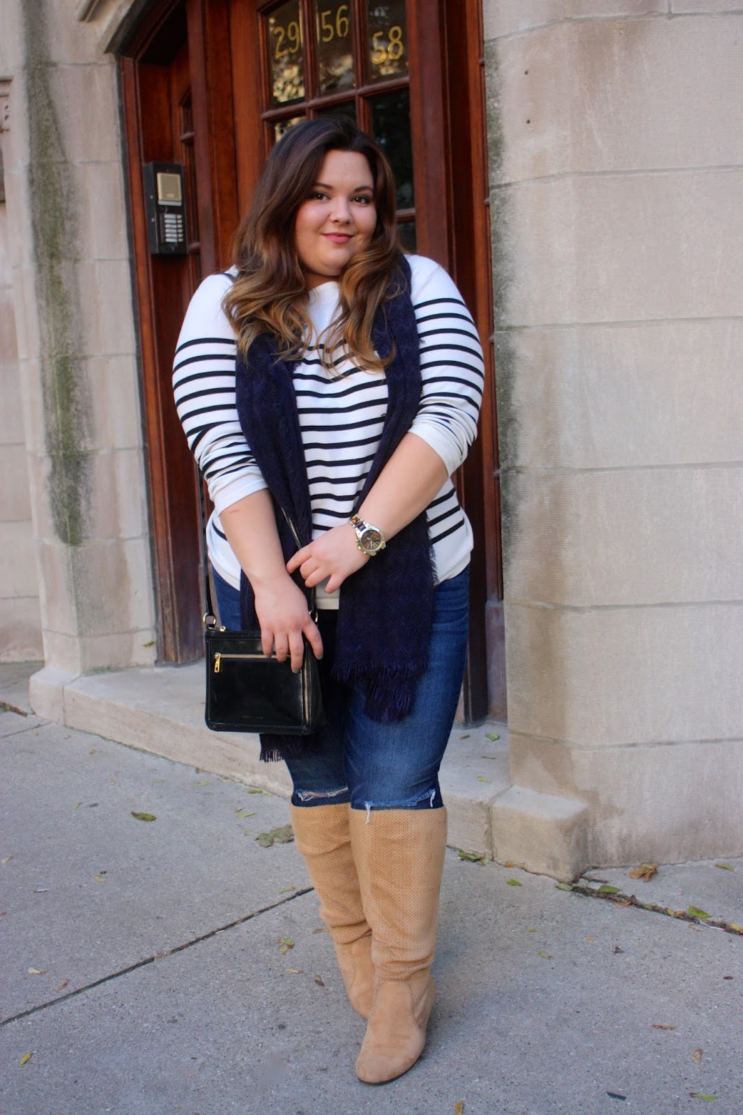 I put this Forever 21 Plus sweater on, which I absolutely love, and as I looked in the mirror, I asked, “Do I look fat in this?” HAH! Yes… because, well, I am fat. I have always loved stripes, but have turned away from them because these rules have been ingrained into my head.