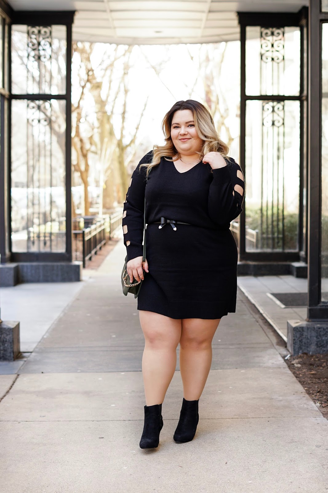 SIZING INFO: I am wearing a a size 1X in the Love Scarlett Cutout Sweater, which is one size smaller than my usual size. I sized down because I wanted the dress to fit a little tighter. However, the dress is still just a loose fitting dress because of the sweater material. I suggest sizing down one size, or sticking to your usual size for a looser fit!