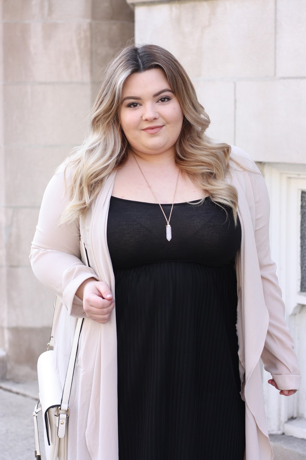 I have been on the hunt for a whimsical duster that can be worn in an office setting, but also with an easy breezy ensemble. I finally found this beautiful blush-colored duster in Forever 21’s plus section, and initially I reached for the military green color, but my BFF Katherine guided me in the right direction toward this one. In the name of versatility, I avoided the green. (I’m planning on going back to get it. Hah)