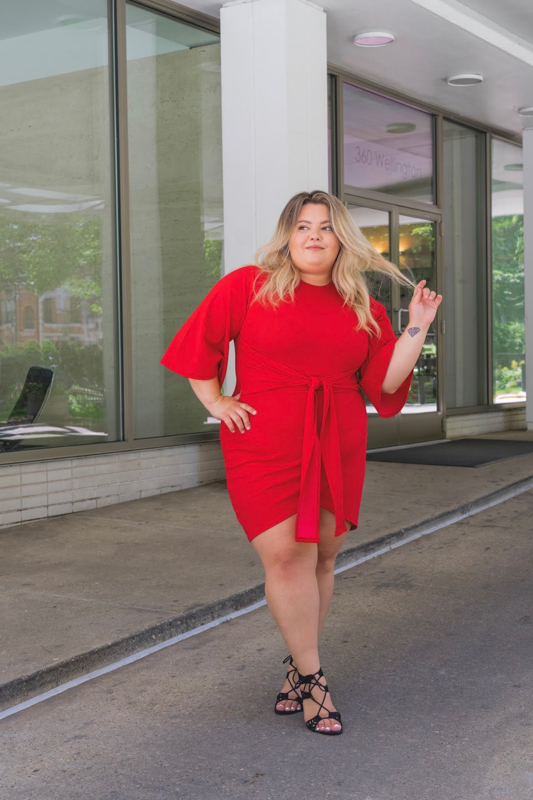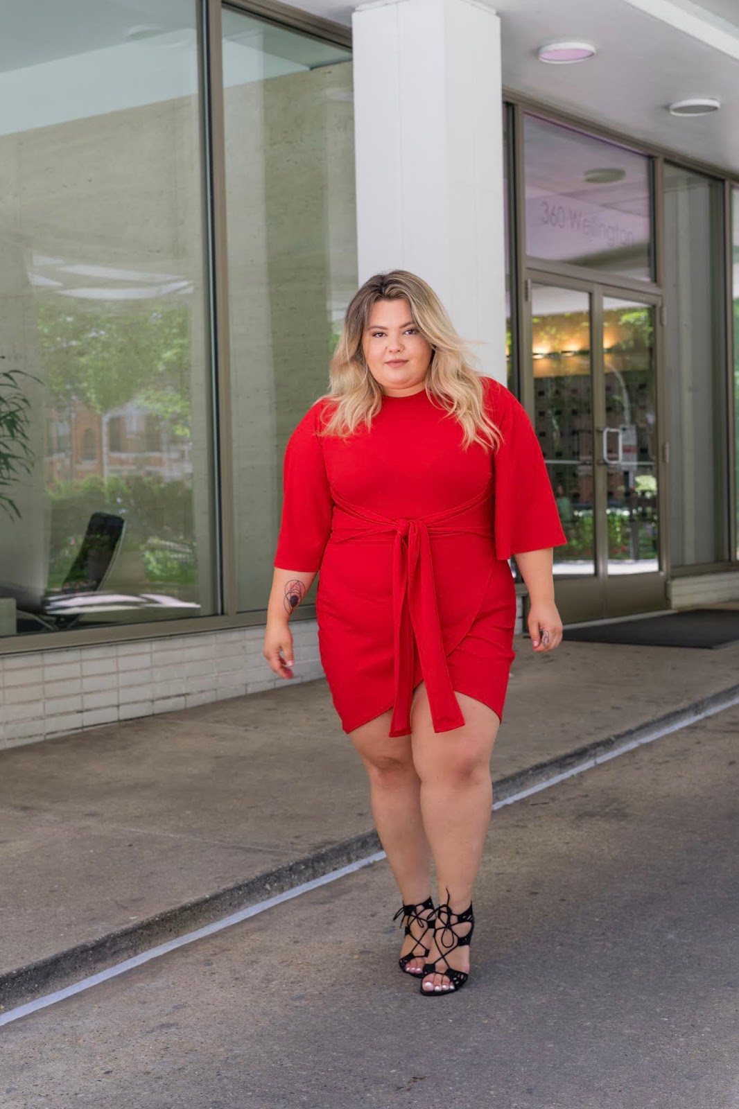 Chicago fashion blogger, Chicago plus size fashion blogger, natalie Craig, natalie in the city, plus size fashion, Chicago fashion, plus size fashion blogger, eff your beauty standards, fatshion, skorch magazine, Chicago model, plus size model, plus size petite, affordable plus size clothing, embrace your curves, plus model magazine, petite plus size, boohoo, curves, red wrap dress, red kimono dress, tie waist dress, boohoo plus size