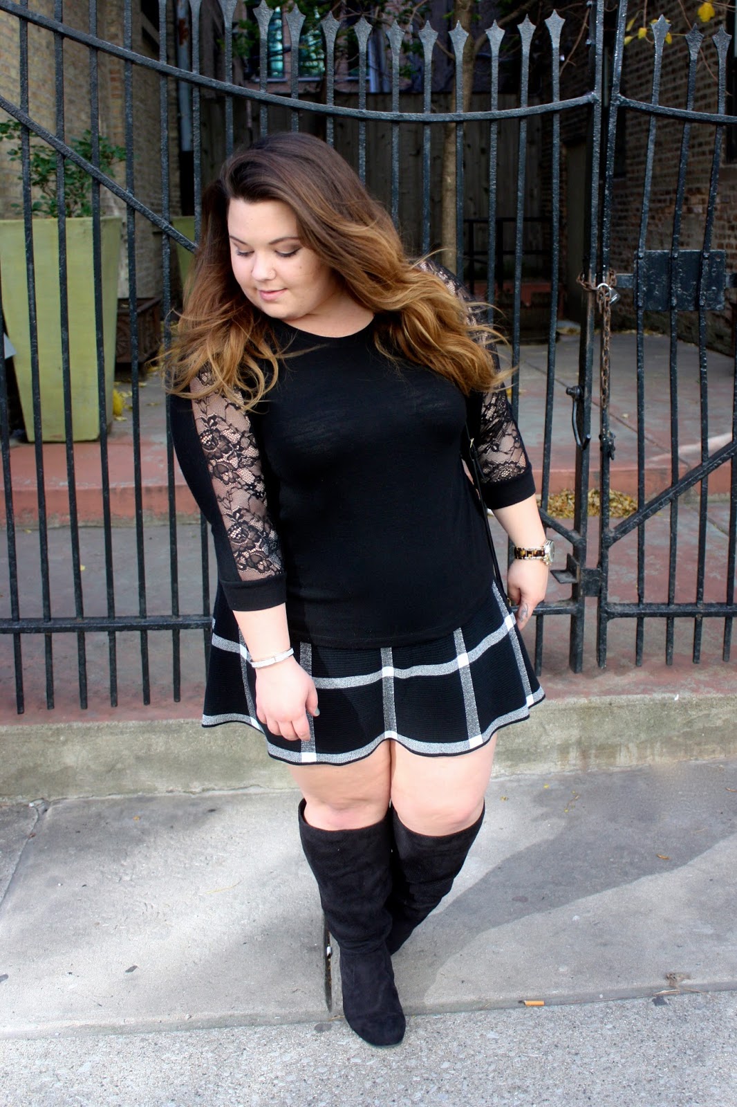 I love the thick, sweater material of this Elle checkered drop-waist sweater skirt, and you can’t beat the simple design that creates a statement. The drop-waist is perfect for curvy hips like mine. Usually when a garment flairs out right at the waist, it makes my hips look unproportionately wide.