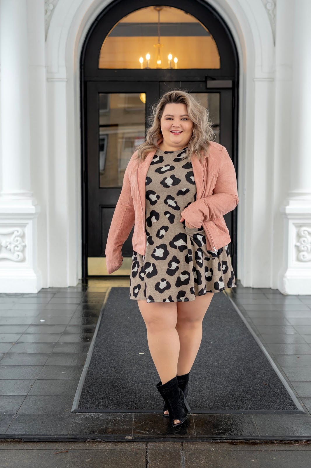 I have been loving the moment that animal print—especially leopard—is having, but I have a hard time embracing the trend because I feel like I can never find the right color and pattern combo that remains true to my style. But when I saw this dress, I knew it was my chance to embrace the leopard trend, and I absolutely fell in love with it! The cut of the dress is perfect on me. Since I am so short (5’2 to be exact), dresses usually run a little long on me, even when I buy a “mini” fit. Aside form being so functional—due to its pockets—the dress is so flirty, fun, and comfortable. To elevate it a touch, I decided to pair it with the Fuax Suede Moto Jacket. This look makes me feel adorable, and I love that it is different from my usual all-black, pattern-lacking wardrobe. Is it too late to create a New Year’s resolution to wear more outfits like this?