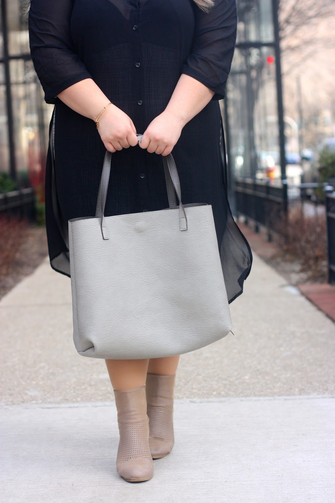 Solid-colored clothing that can stay in my closet for multiple seasons are key. I love being able to grab pieces like this black chiffon midi dress and pair it with everything to create endless outfit possibilities.