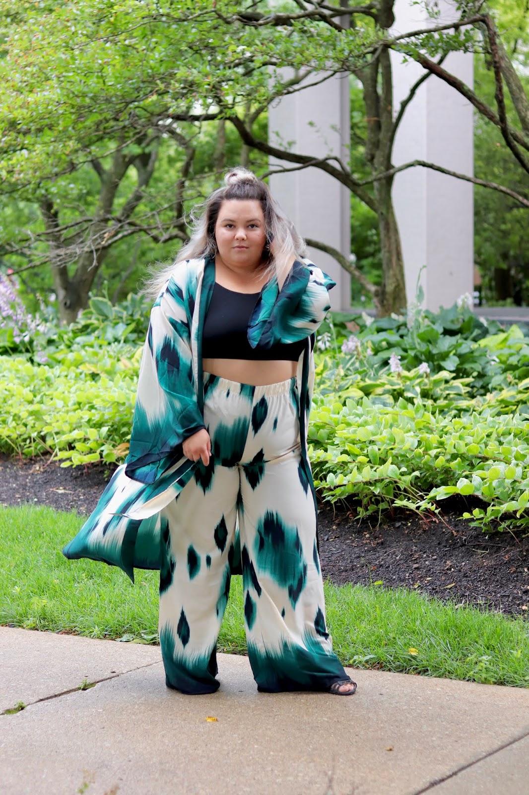 So here I am, wearing things that scare me (just a little), but thrill me beyond words. This Never Apologetic Pant Set set is my latest obsession. I get so excited when I see it hanging up in my closet because it really is the coolest set I have ever seen in my life. I found it on Fashion Nova Curve, and I was immediately drawn to the loose, whimsical fit and the turquoise hues. I anxiously awaited its arrival, as I was a little scared that the 100% polyester fabric wouldn’t fit me as loose as I expected. However, when it arrived, I slipped it on, and it was stunning and just as perfect as I had hoped. I am still trying to figure out what the best top is to wear with this. I naturally went for my KiKi Cropped Top, but I am wondering if the outfit needs a top that is more neutral and fits more like a bra, showing a bit more cleavage. I haven’t decided yet. But for now, I think this cropped tank is fine!