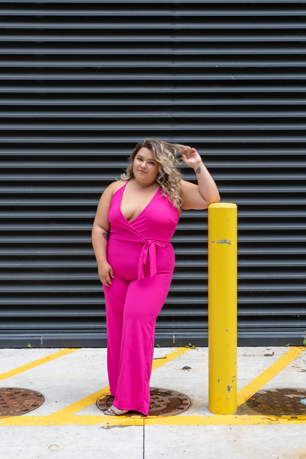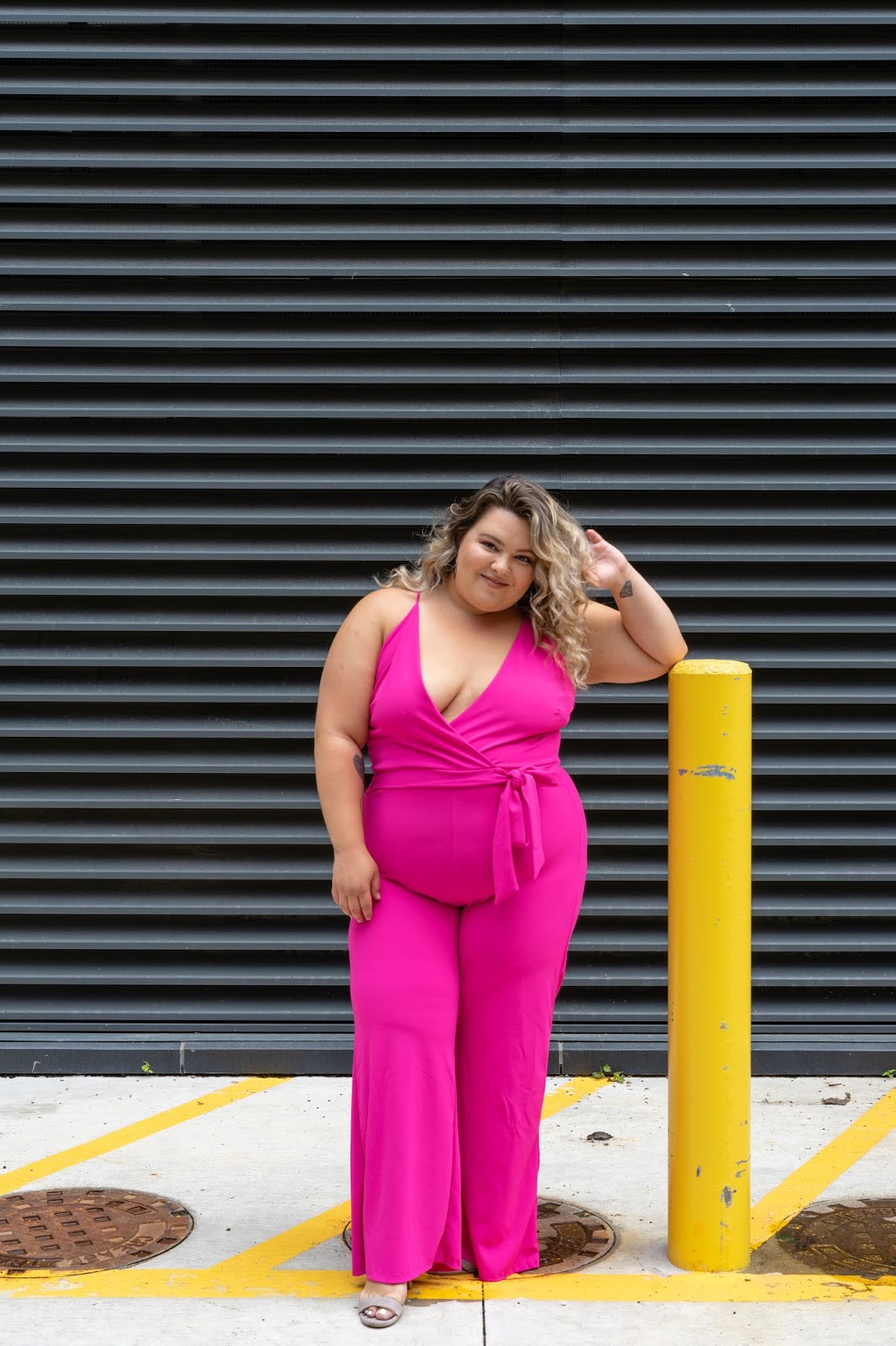 Yeah, I’ve done a total 180. I often wonder why it was that I only wore black. Was it because it was flattering? Was it because I just wanted to blend in and not attract attention to myself? I think both of these are fitting. But times have changed, and I don’t want to just blend in anymore. I’m proud of my curves and I want EVERYONE to know it. So I think this hot pink jumpsuit is very fitting for my take on fashion now.