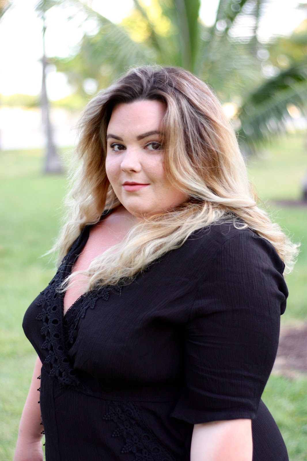 But when I saw this plus size crochet trim romper from Curvy Sense, I had this wave of hope and faith. So I took the plunge, and it turns out that I actually love it. The fit is so flattering and sexy! I love how the crochet trim comes up a little higher on the thigh and lower in the back. And the plunging neckline is also super sexy. I used some fashion tape to secure my neckline a little bit as it is pretty windy in Miami, and I didn’t want my girls to fall out! I wore this out to dinner and a little stroll down Ocean Drive. The look was fun, flirty, and perfect for the occasion.